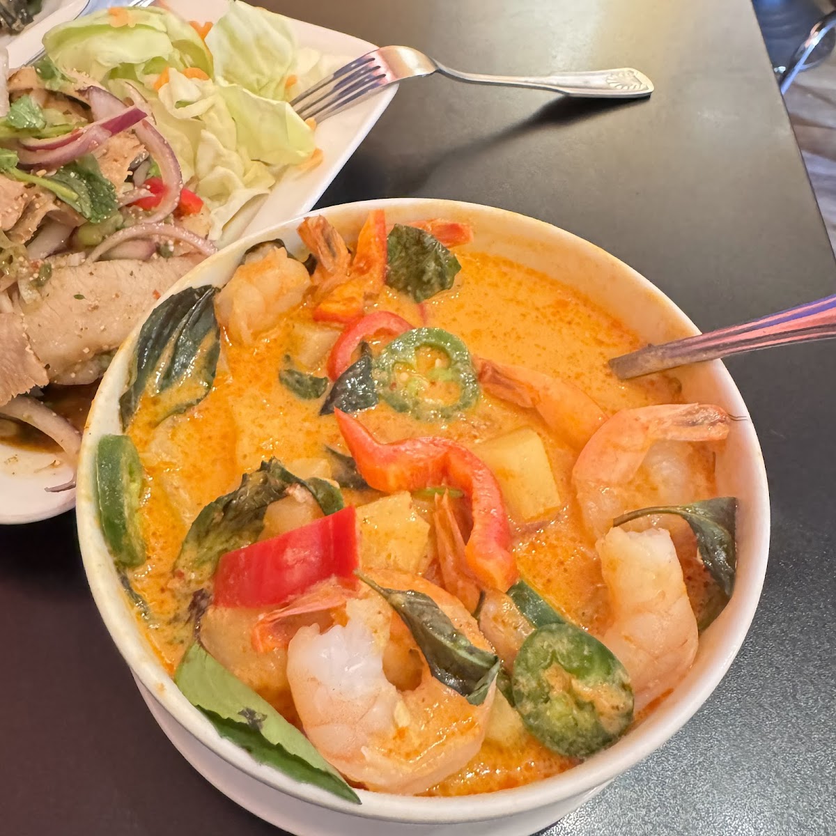 My first visit was with a friend who grew up in Bangkok, and her reaction said more than any menu description ever could. She immediately pointed to the beef boat noodles and smiled. That dish, often described by Thai food historians at organizations like the Thai Trade Center USA as a regional staple, relies on long-simmered stock, layered seasoning, and careful balance. Here, the broth arrives dark, aromatic, and complex, with star anise and cinnamon clearly present but never overpowering. According to food science research published by the International Journal of Gastronomy, slow extraction of collagen and spices is what creates depth in traditional noodle soups, and you can taste that patience in every spoonful.