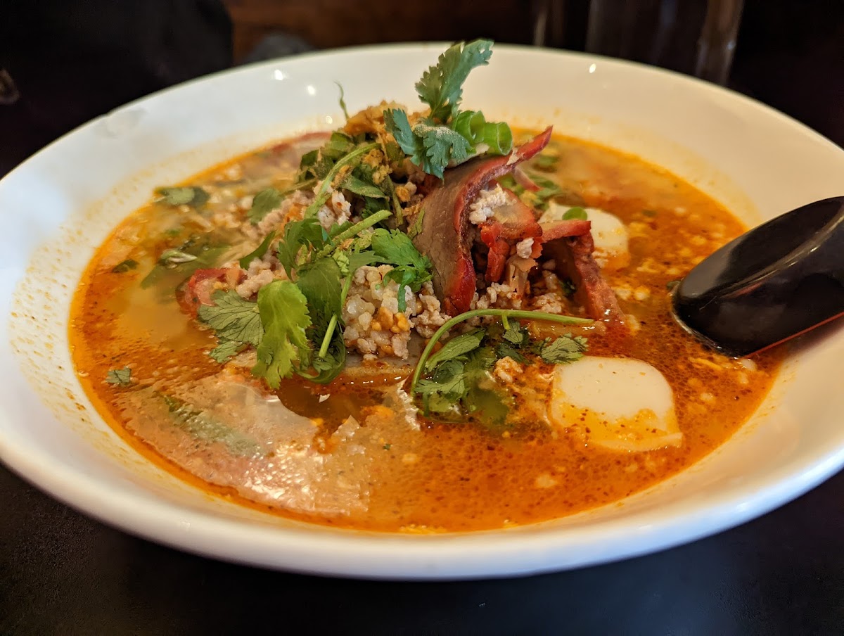 The menu focuses on noodle bowls, but it doesn’t feel limited. Rice noodles, egg noodles, and thin wheat noodles are all prepared differently depending on the dish, which shows real kitchen discipline. One server explained that broths are cooked separately each morning, a process that can take up to eight hours. That lines up with what chefs like Andy Ricker of Pok Pok have shared publicly about authentic Thai soup preparation: shortcuts flatten flavor, and time is the real ingredient. The result here is a bowl that tastes bold comforting and precise, not rushed or generic.